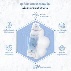 มูสโฟมล้างหน้าสูตรอ่อนโยนพิเศษ มีค่าpH 5.47 ขจัดสิ่งสกปรก มลภาวะ รวมทั้งฝุ่น PM2.5 ได้อย่างสะอาดหมดจด ลดการเสียดสี พร้อมสารบำรุงผิวให้ชุ่มชื้นและแข็งแรง